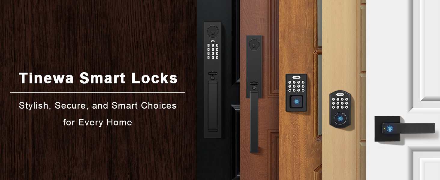 Tinewa Keyless Entry Door Lock with Lever, Full Escutcheon Smart Door Handle, Digital Keypad Deadbolt with App, Front Door Handleset with Single Cylinder Deadbolt and Lever, Auto Locking, Black Finish