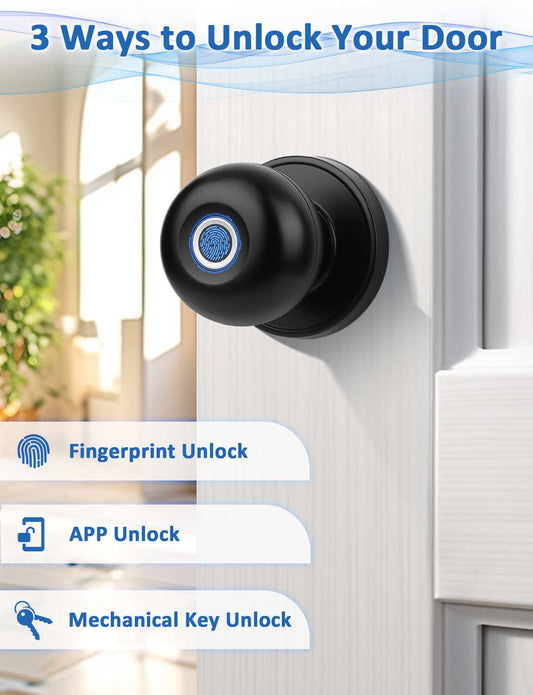 Tinewa Smart Door knob, Fingerprint Smart Lock Biometric Door knob with App Control, Great for Bedrooms,Cloakroom,Apartments Offices,Hotels Matte Black