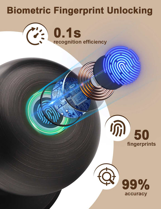 Tinewa Smart Door knob, Fingerprint Smart Lock Biometric Door knob with App Control, Great for Bedrooms,Cloakroom,Apartments Offices, Hotels, Oil Rubbed Bronze