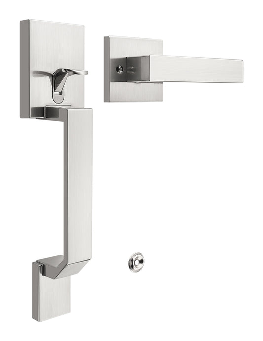 Tinewa Square Front Door Handle with Classic Door Lever, Upgrated Exterior Door Entry Handle No Lock, Reversible for Left & Right Handed 1 Pack