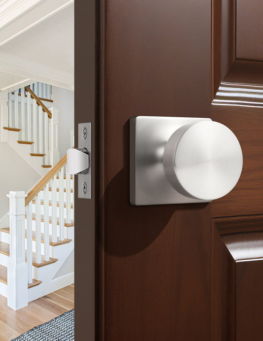 Tinewa Interior Passage Door Knob, Handle for Closet and Hallway Doors, Heavy Duty Square Non-Locking Door Knob, Keyless Door Knobs on Square Rose (1-10 pack)