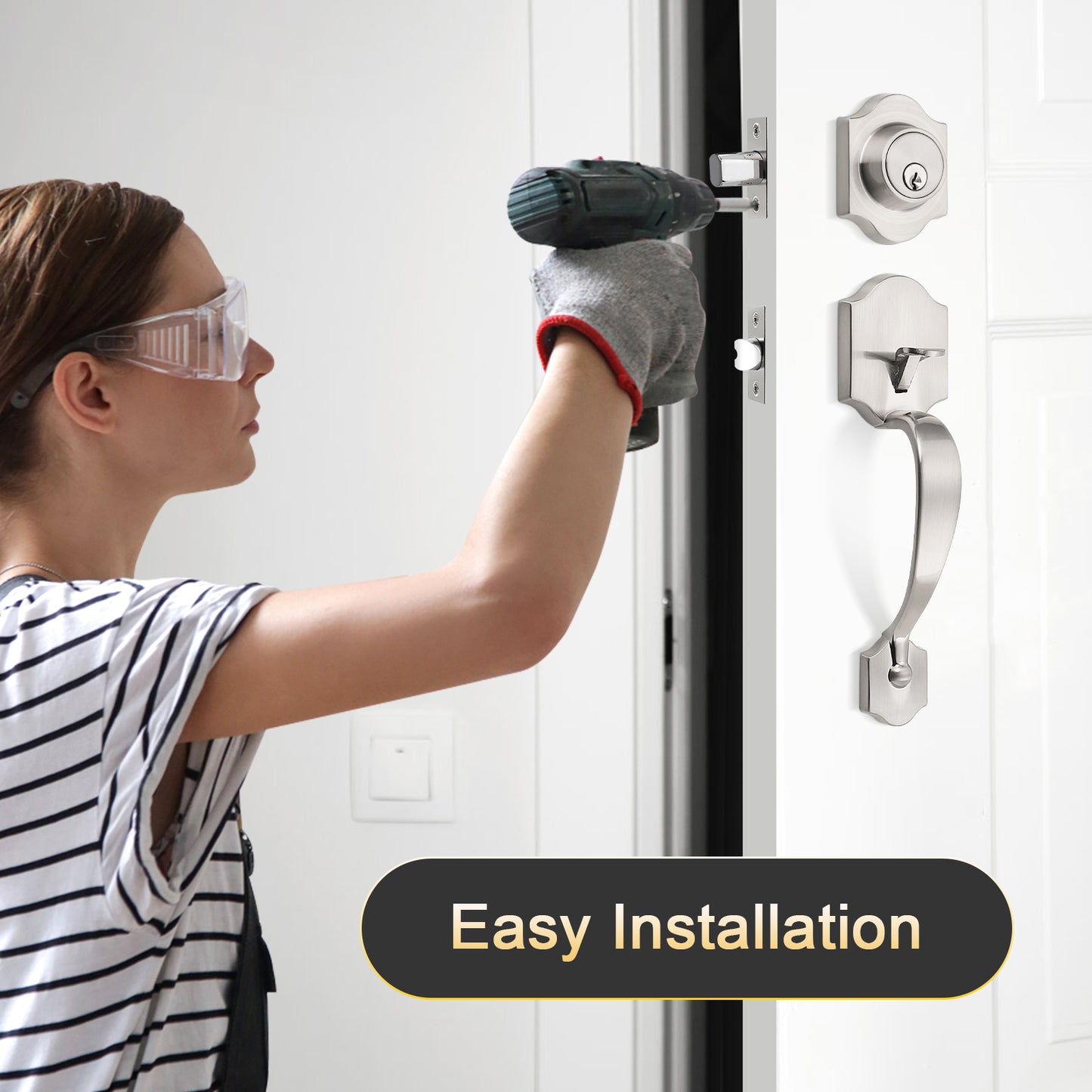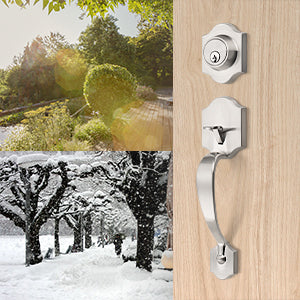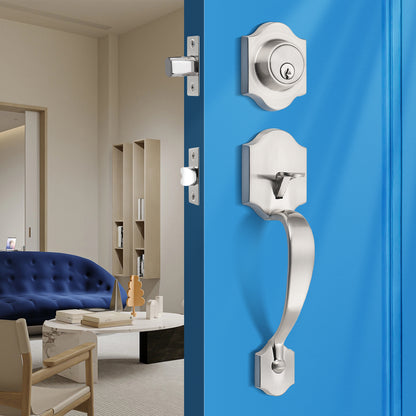 - Secure Handleset Design: Ideal for front or entry doors, featuring an arched deadbolt lock set with a keyed exterior and turn-lock interior for dependable security.